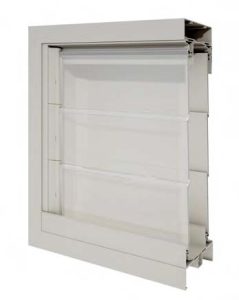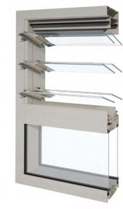 Two Altair Louvre Galleries in a secondary glazing configuration within a 150mm commercial framing system. The outer Altair Louvre is a Powerlouvre Gallery, the inner Altair Louvre can be either a Powerlouvre Gallery or manually operated. |